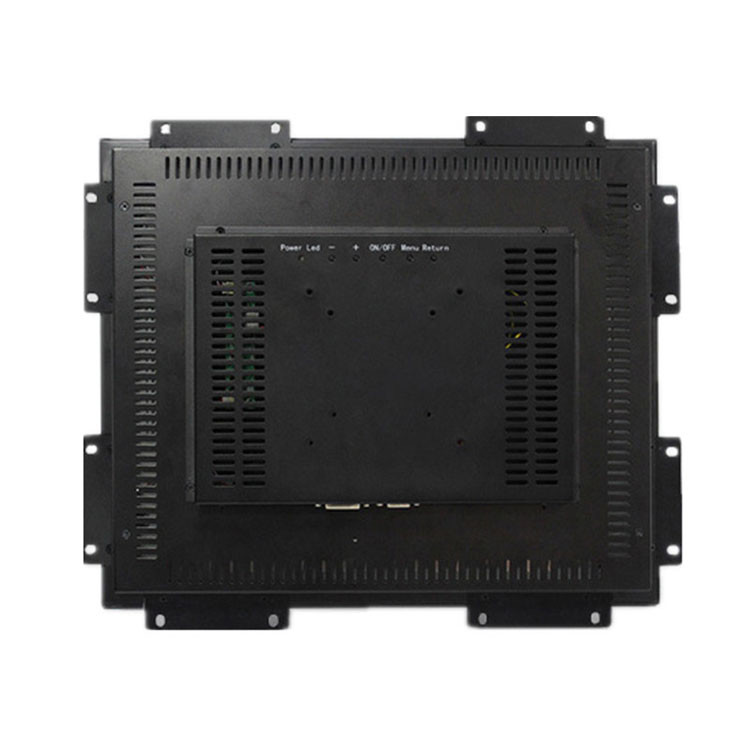 De open frame-structuur aan de achterkant beschikt over een solide metalen behuizing met meerdere ventilatiesleuven, die helpen bij het handhaven van stabiele thermische prestaties tijdens continu gebruik. Duidelijk gerangschikte interfaces en beschermde aansluitgebieden ondersteunen nette interne bedrading en verminderen het risico op onbedoelde schade tijdens installatie of onderhoud. Dit ontwerp maakt de monitor zeer geschikt voor embedded gebruik in kiosken, schakelkasten en industriële apparatuur waar betrouwbaarheid en eenvoudige integratie essentieel zijn.