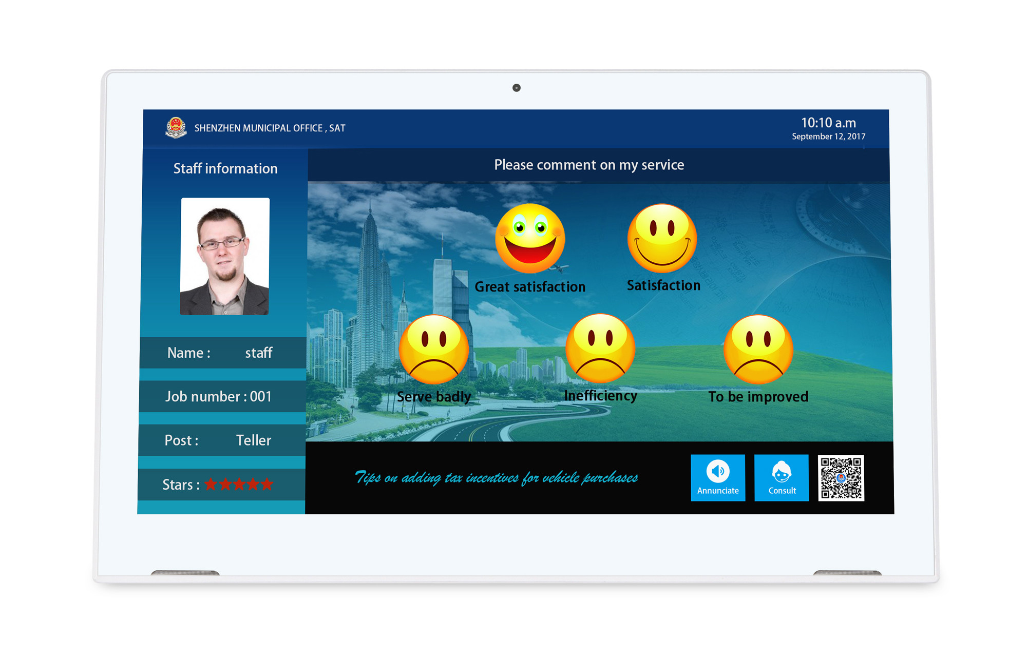 Deze tablet is uitgerust met een 2,0 megapixel camera aan de voorzijde en ondersteunt soepele en duidelijke videogesprekken, afgelegen vergaderingen en face-to-face interacties met klanten.op afstand bestellen, of video-gebaseerde klantenservice in restaurants, winkels, gezondheidszorg en onderwijsinstellingen.De camera biedt een evenwichtige beeldkwaliteit met een snelle respons en een laag stroomverbruik.
