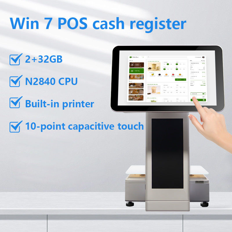 Supermarkt POS-systeem 15,6 inch dubbel aanraakscherm met ingebouwde weegschaal printer draadloos protocol NFC-interface VGA 16