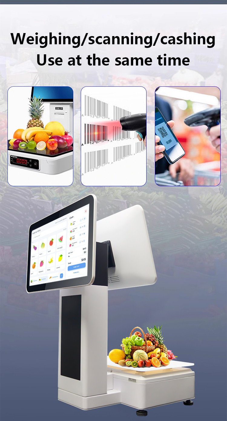 Supermarkt POS-systeem 15,6 inch dubbel aanraakscherm met ingebouwde weegschaal printer draadloos protocol NFC-interface VGA 13
